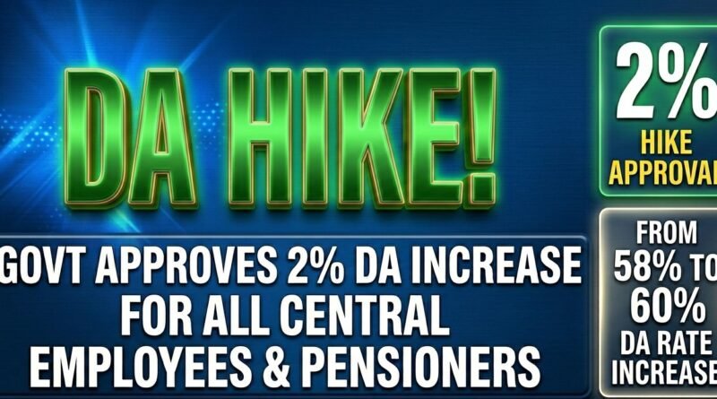 बड़ी खबर: केंद्र सरकार ने केंद्रीय कर्मचारियों के महंगाई भत्ते (DA) में 2% की बढ़ोतरी को दी मंजूरी