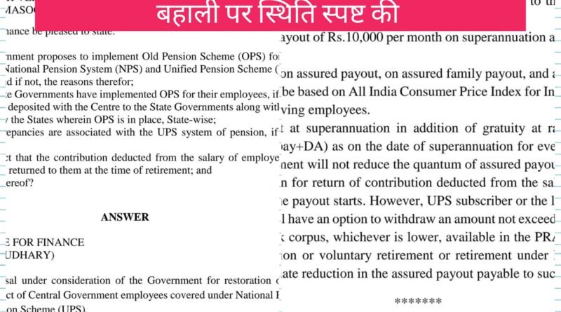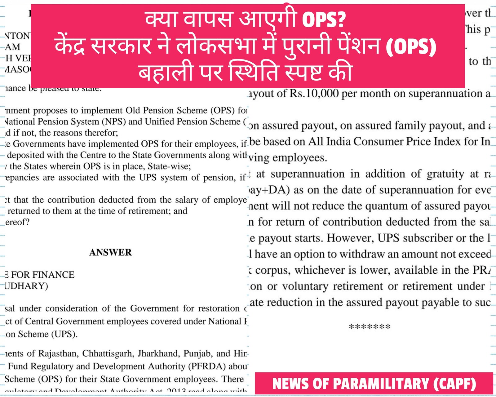 बड़ा अपडेट: क्या वापस आएगी OPS? केंद्र सरकार ने लोकसभा में पुरानी पेंशन (OPS) बहाली पर स्थिति स्पष्ट की