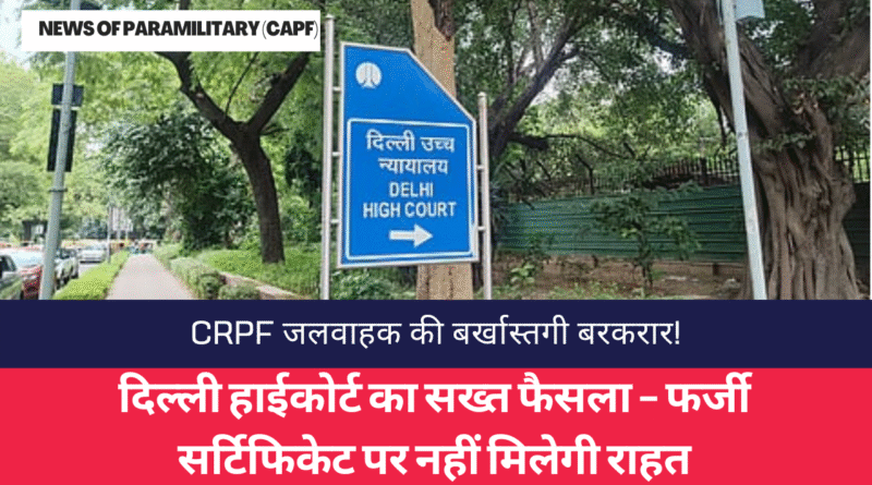 Read Moreदिल्ली हाईकोर्ट ने केंद्रीय रिजर्व पुलिस बल (CRPF) के एक जलवाहक को फर्जी मैट्रिकुलेशन प्रमाणपत्र जमा करने के आरोप में