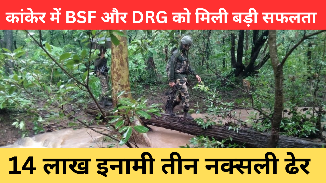 कांकेर में BSF और DRG को मिली बड़ी सफलता: 14 लाख इनामी तीन नक्सली ढेर, हथियार बरामद