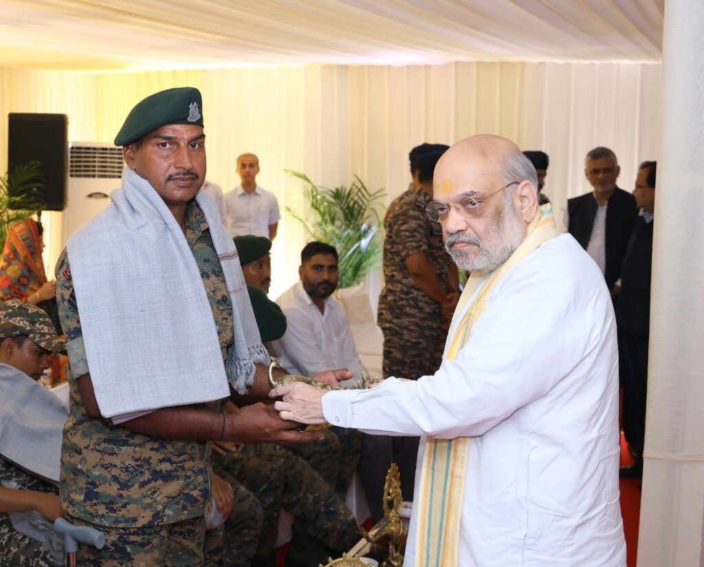 केंद्रीय गृह एवं सहकारिता मंत्री अमित शाह ने कर्रगुटालु पहाड़ी पर हुए बड़े नक्सलविरोधी अभियान ‘ऑपरेशन ब्लैक फॉरेस्ट’ को सफलतापूर्वक अंजाम देने वाले CRPF, छत्तीसगढ़ पुलिस, DRG और कोबरा बटालियन के वीर जवानों से मुलाकात की और उन्हें सम्मानित किया।